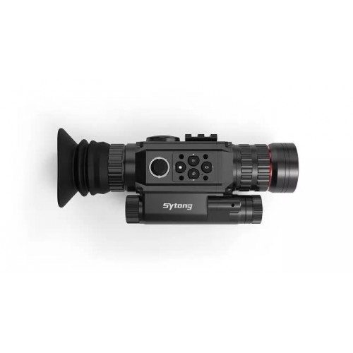 "Видимая" ИК-подсветка с длиной волны 850 нм. Повышенная чувствительность CMOS сенсора Sytong HT-60 позволяет ночью наблюдать и прицеливаться даже без ИК-осветителя, тем самым снижая риск обнаружения охотника. В полной темноте или же в тех случаях, когда чувствительности прибора недостаточно, включается ИК-подсветка. Осветитель доступен только в чёрно-белом ("ночном") режиме, фокусируется плавным выдвижением собственного объектива, имеет 3 уровня мощности-300, 500 и 700 мВт. Дистанция обнаружения объекта типа "лось" в темноте, с подсветкой, составит не менее 200 метров. При работе с прицелом никогда не направляйте лазер в глаза - это очень опасно для зрения!