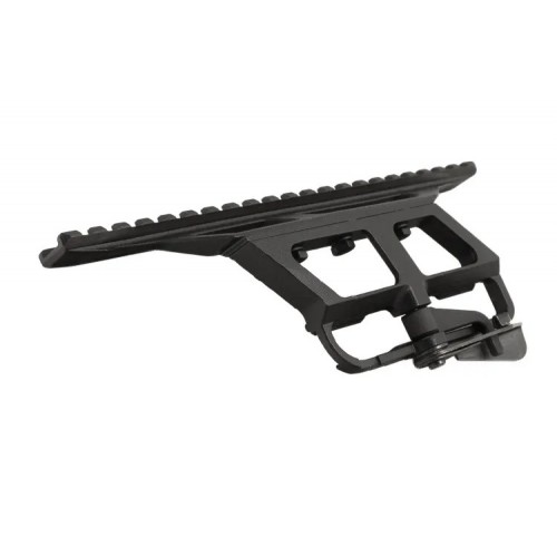 Кронштейн предназначен для установки на боковую планку АК, карабинов Сайга, Вепрь. Фиксируется на планке быстросъемным флажковым зажимом с эксцентриком. Выполнен из стали. Планка Picatinny/Weaver цельнофрезерованная с частью корпуса кронштейна. Длина планки 220мм, 21 слот, ширина пазов 5мм.