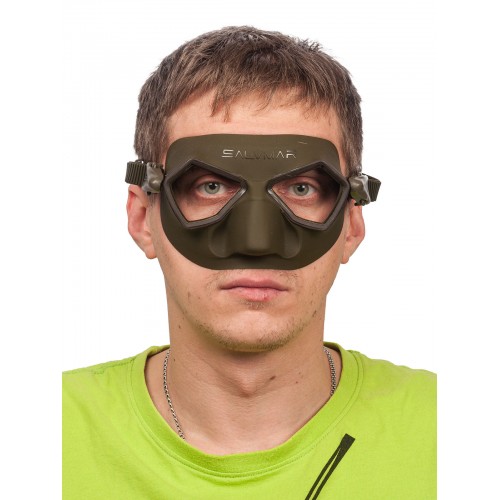 - Маска Salvimar MIMIC имеет очень широкий угол обзора. Это достигнуто за счет минимального пространства под маской и специальной формой стекла.