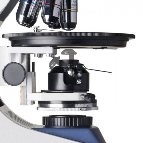 Система проходящего света предназначена для работы как с обычным светом, так и поляризованным. Для работы в поляризованном свете используется вращающийся 0 - 360⁰ поляризатор и вращающийся 0 - 90⁰ анализатор. Поляризатор в поворотной оправе со шкалой встроен в конденсор, анализатор со шкалой и нониусом 0,1⁰ расположен в промежуточном тубусе между окуляром и объективом.