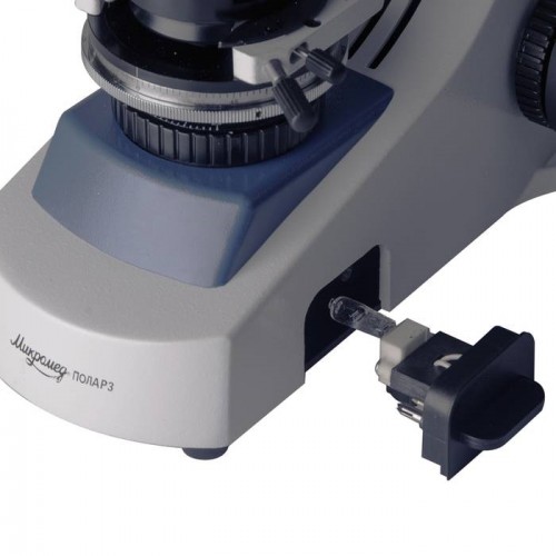 Для изучения прозрачных объектов, имеющих в анизотропной среде слабое двойное лучепреломление, конструкция микроскопа Микромед ПОЛАР 3 позволяет применять компенсационные пластины и светофильтры, для установки которых служат пазы на корпусе осветителя проходящего света. Также в конструкцию микроскопа входит фокусируемая линза Бертрана, применяемая для коноскопических исследований и позволяющая наблюдать интерференционные фигуры исследуемых объектов в выходном зрачке объектива. При необходимости подобных исследований линза Бертрана вводится в ход лучей.