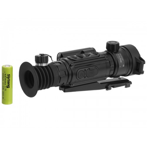 Прицел тепловизионный Sytong XM06-50LRF x2.5/5/10/20, сенсор 640x512, 12μm, лазерный дальномер до 1200м, баллистический калькулятор, NETD ≤25mk, объектив ø50мм, 50Гц, обнаружение ростовой фигуры 1750м, экран OLED 1024x768, 5 цветовых палитр, 8 прицельных сеток, Wi-Fi, запись фото, видео 32GB, PiP, 18650 до 8ч, кронштейн на Picatinny, IP66, 803г
