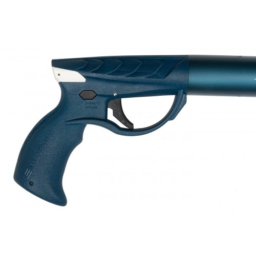 - Очень удобная рукоять, сделанная из армированного стекловолокном нейлона имеет эргономичную форму и наклонена по отношению к ресиверу на 30 градусов, что делает даже очень продолжительную подводную охоту комфортной. А главное она достаточно большая, и ружье удобно держать даже в рукавице 9 мм.