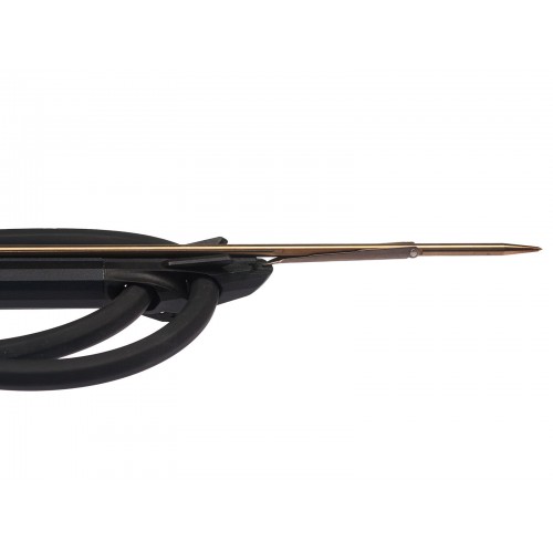 - Ружье оснащается специальным гарпуном «ARES» ø6,5 мм на хвостовике этого гарпуна, есть выступ, который встает в паз верхней крышке спускового механизма. Все кто хоть раз охотился с арбалетом знают, что люфт гарпуна (право-лево) в спусковом механизме составляет 3-5 мм, что может негативно сказываться на точности выстрелы. За счет нового спускового механизма и специального гарпуна – эта проблема решена и теперь гарпун всегда стоит ровно по центру спускового механизма, что, несомненно, существенно увеличивает точность. При этом ружье ARES можно использовать с обычными гарпунами – просто в этом случае не будет работать функция центровки гарпуна.